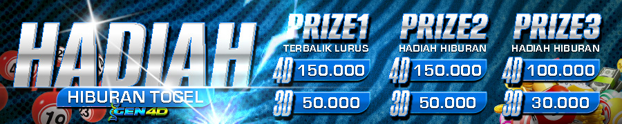 - Hadiah prize 3 : 4D = Rp. 100.000,- / 3D = Rp. 30.000,-